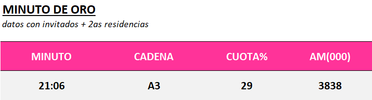 Antena 3 Noticias 2, con Vicente Vallés, repite como lo + visto del día con un 20.1% de cuota, 2.776.000 espectadores y 63.5% de fidelidad.