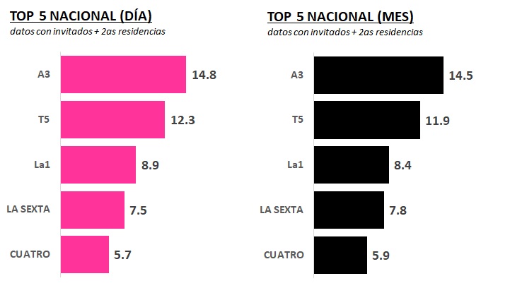 Minuto a minuto perfecto y sin duda uno de los pulmones de TV3 es Està Passant al firmar un gran 17.2% de cuota, 361.000 espectadores y 58.5% de fidelidad.