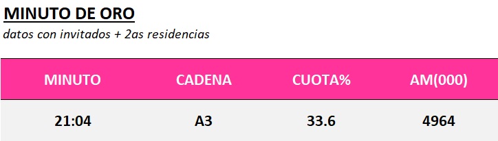 Buen 6.2% de cuota para EQUIPO DE INVESTIGACIÓN y 1.025.000 espectadores en el prime time de La Sexta. NOCHE DE FORTUNAS promedió un 5.6% de share, 441.000 espectadores y logra un total de 3.1 millones de contactos.