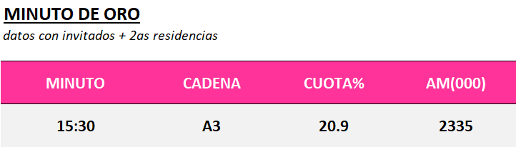 SOCIALITÉ es ayer el espacio de entretenimiento con mejor cuota del día. 14.8% de share para el espacio presentado por María Patiño. Plusvalías del +32% y fidelizando al 36% de la audiencia.