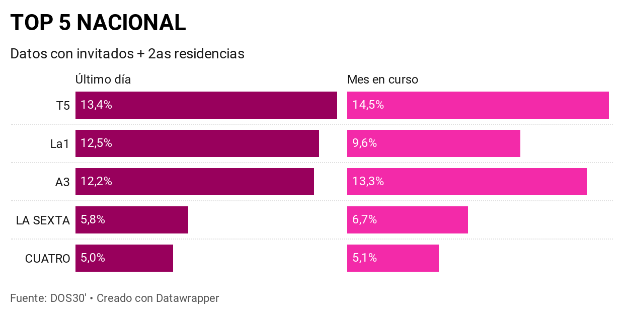 La entrevista de Jordi Évole a Leo Messi logró un gran 12.6% de share y fue visto por 2.291.000 espectadores en La Sexta. El especial alcanzó el 20.5% de share y 562.000 espectadores en Cataluña.